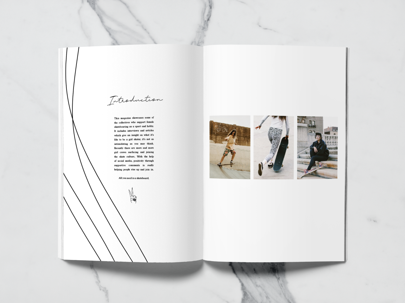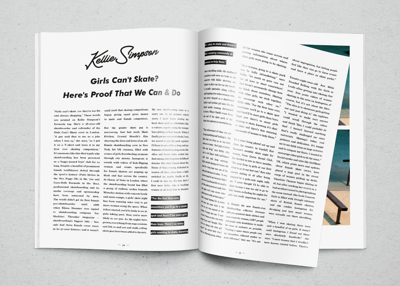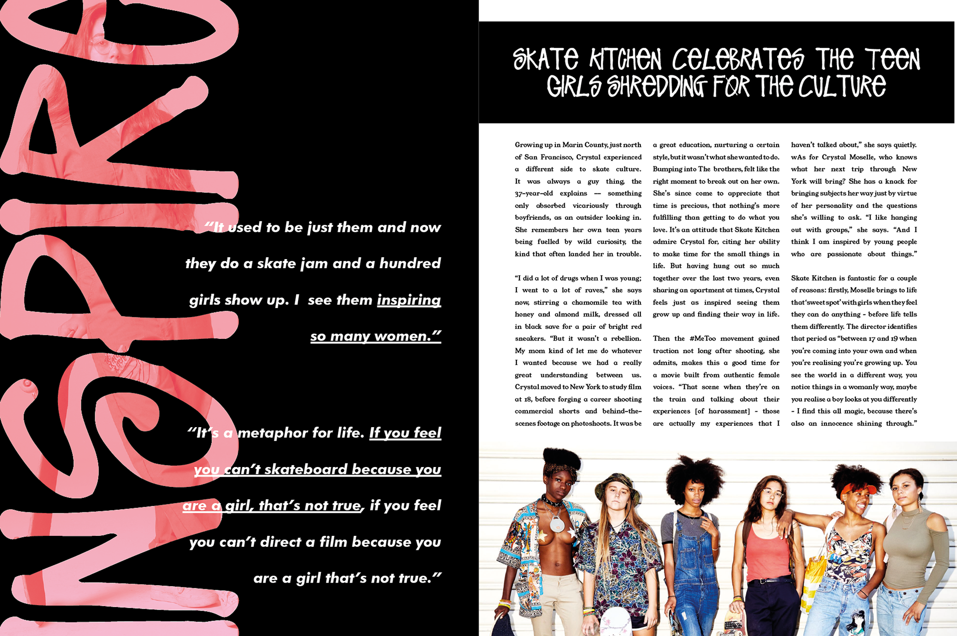 Make Skating Radical Again is an editorial piece to celebrate and showcase talented female skateboarders and to encourage girls to take up the hobby. The first issue features The Skate Kitchen, Brujas and Doyenne.